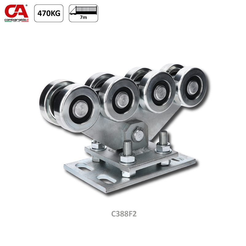 - C388F2 vozík INTERMEDIO pre samonosný systém Combi Arialdo do 470kg, 8 kolieskový, výškovo nastaviteľná platňa, pre profil 80x85mm
