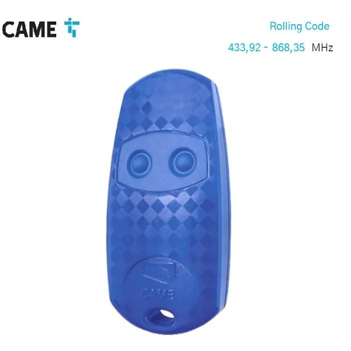 Diaľkový ovládač k pohonom CAME 2-kanálový. 433,92 + 868MHz, plávajúci kód. Priama náhrada za predchádzajúce modely CAME ATO2 a CAME ATO2 EV. Originál priamo od Talianskeho výrobcu Came. Nahraje sa priamo do príjimača na motore. Nedá sa kopírovať z ovládača do ovládača !!! Na diaľkový ovládač je možné nahrať až 2 rôzne pohony Came.