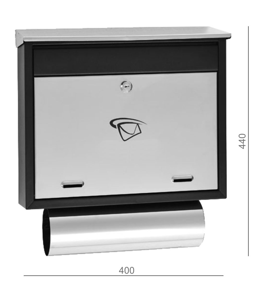 - E-LUX2 Schránka poštová (400x440x100mm) nerez/ čierna, max. formát listu: C4, leštená nerez /AISI430