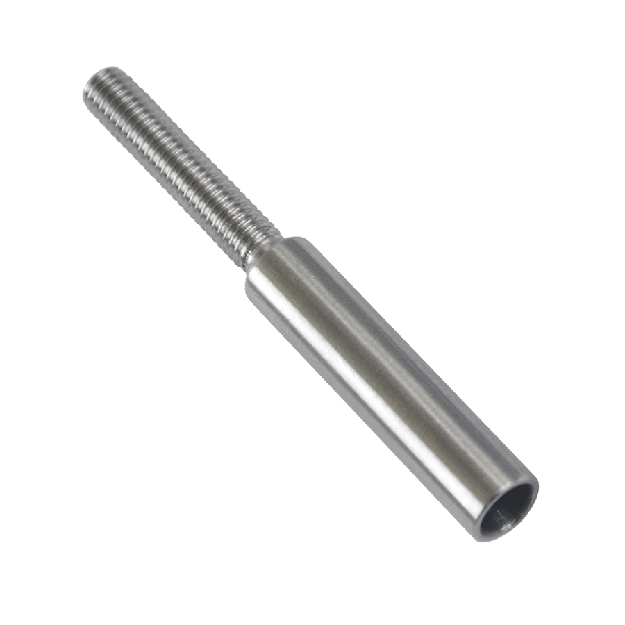 úchyt (lepiaci) pre nerezové lanko ø 6mm s vonkajším závitom M6 x 30mm, ( ø 9mm / L: 70mm), brúsená nerez K320 /AISI304