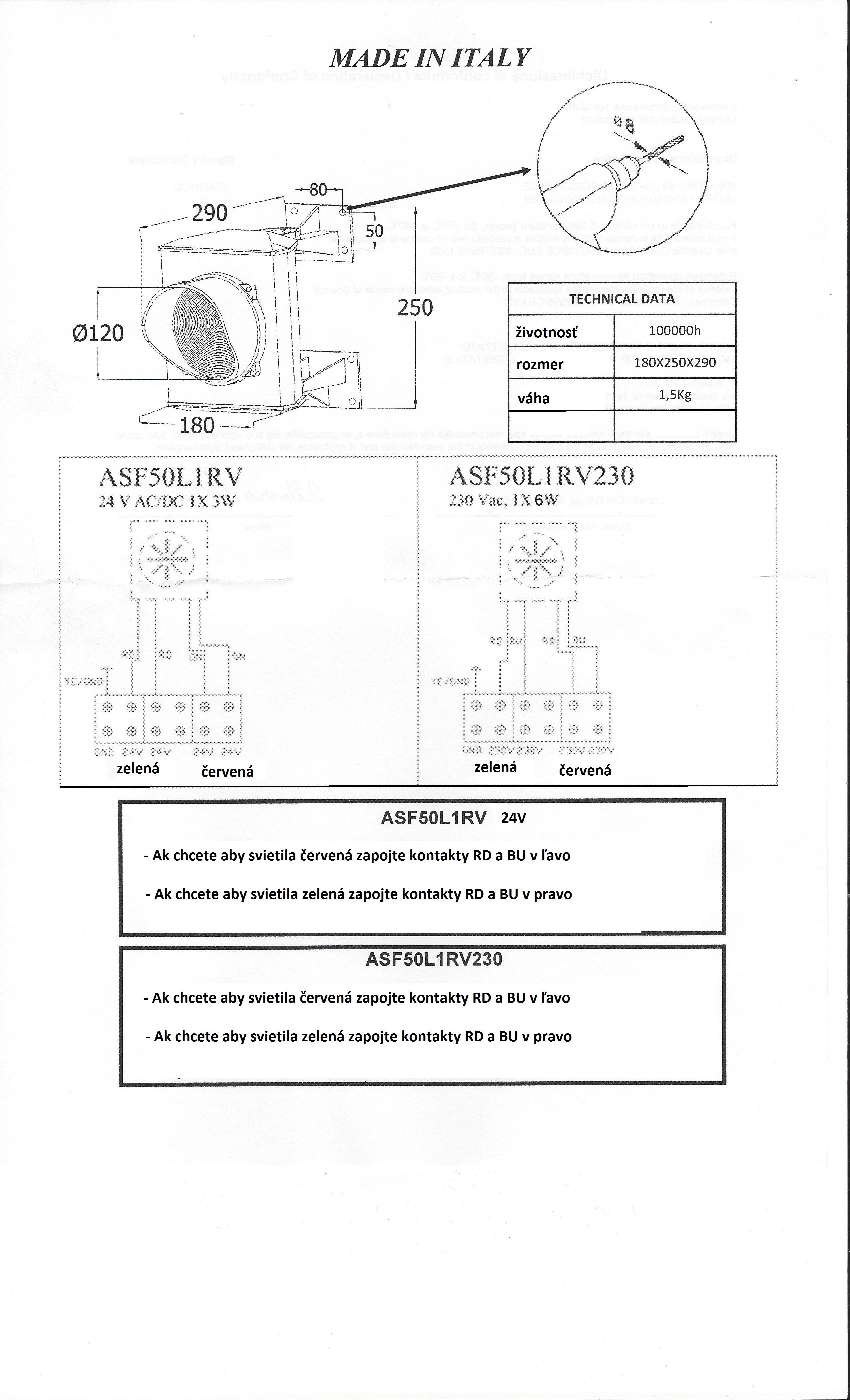 NICE L1RV24 Semafór LED dvojfarebný, jednokomorový, 24VSkladom135,92 €/ ks110,50 € bez DPH