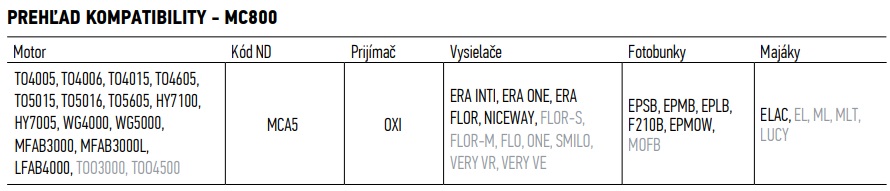 Nová riadiaca jednotka Nice MC800 nahrádza staršie, už nevyrábané jednotky A6, A6F, A60, A400, A3, A3F, A700