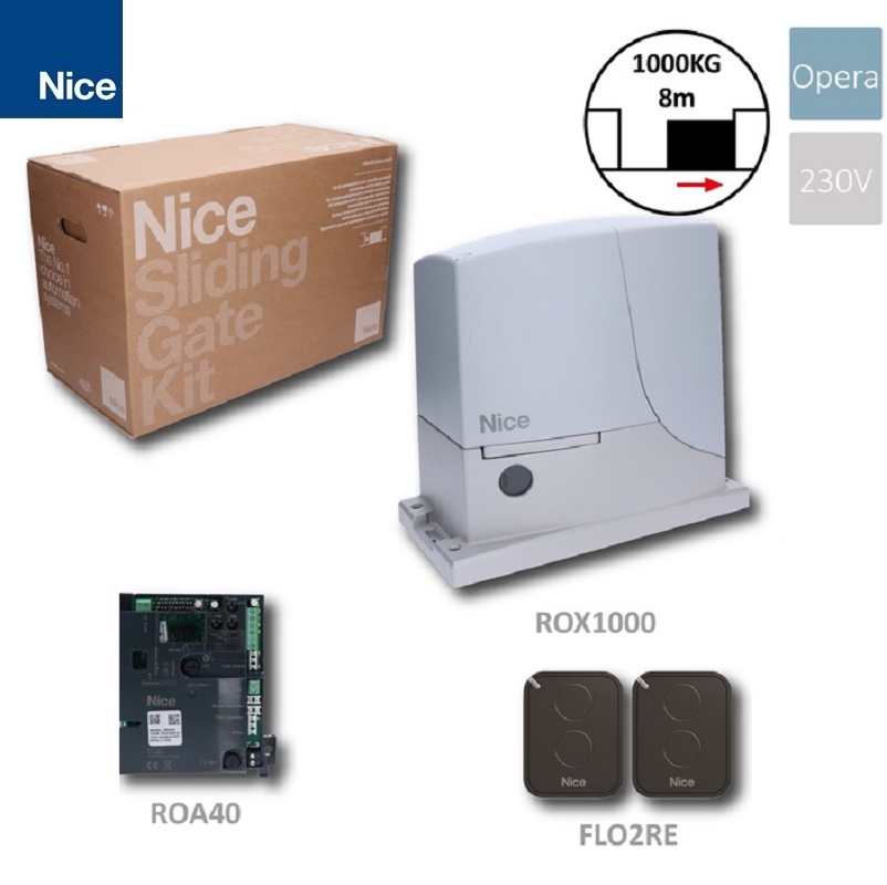 - NICE ROX1000KLT sada pre posuvnú bránu do 1000kg, 1x ROX1000 (230V, 350W, 800N), 1x ROA40 so zabudovaným prijímačom, 2xFLO2RE