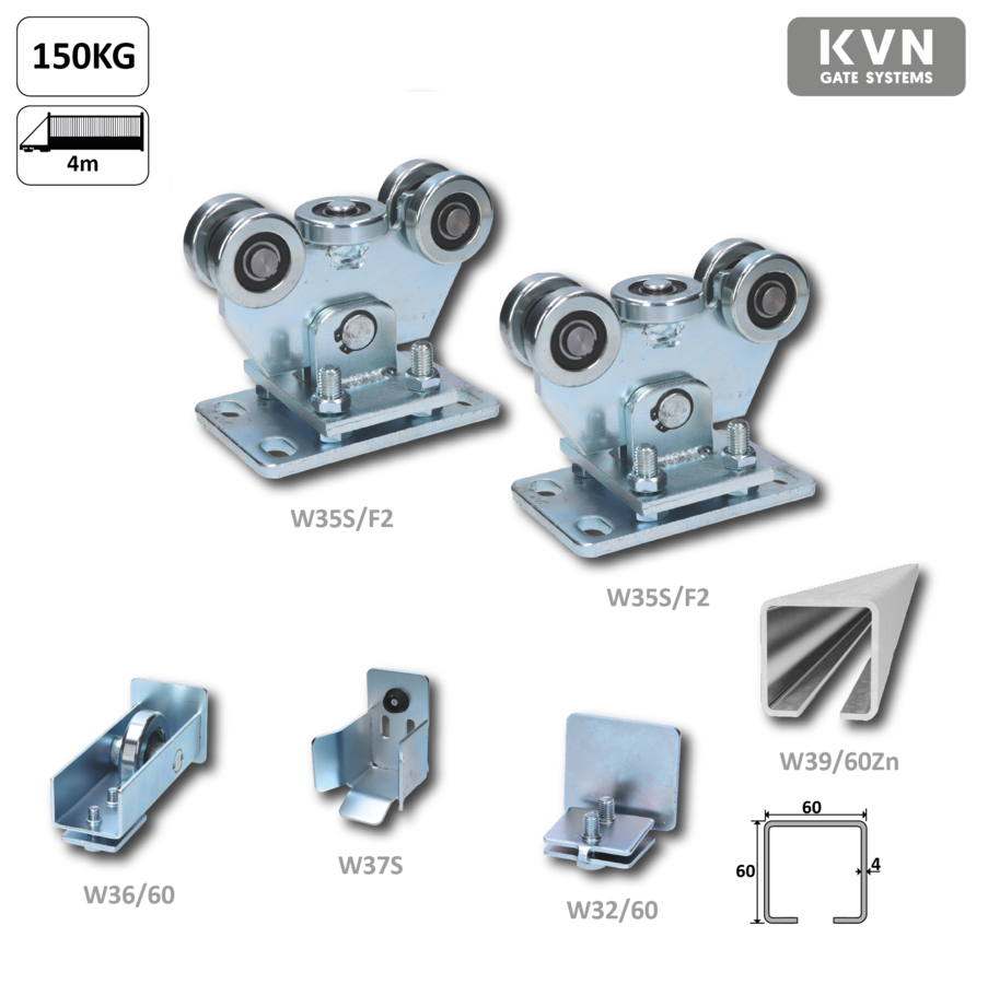 - W Set60Zn-F2 samonosný systém 60x60x4mm posuvnej brány do 150kg/4m otvor, pozinkovaný profil