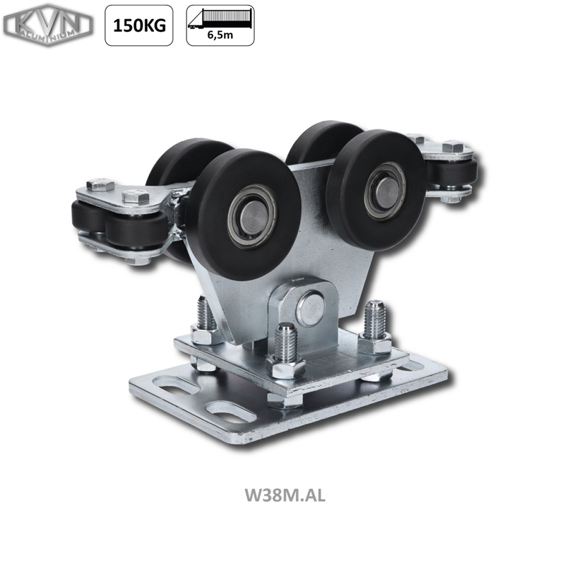 W38M.AL vozík pre hliníkový C profil 95x100 mm samonosného systému posuvnej brány, nylónové kolieska 8ks, ložiská 6004ZZ, pozinkovanýSkladom75,28 €/ ks61,20 € bez DPH