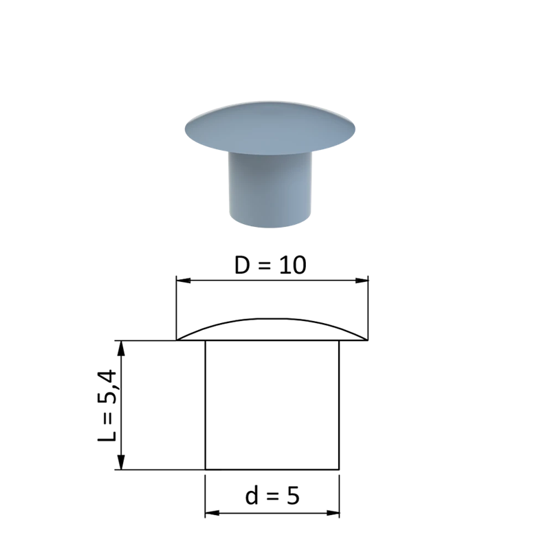 ZDO10x5GRAY Vnútorná krytka guľatá ø 10 mm, otvor ø 5 mm, sivá, plastSkladom0,10 €/ ks0,08 € bez DPH