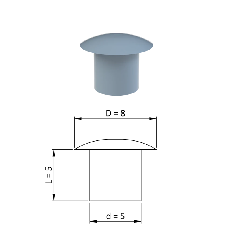 ZDO8x5GRAY Vnútorná krytka guľatá ø 8 mm, otvor ø 5 mm, sivá, plast