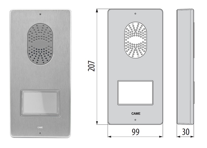Jedná sa o nový externý panel s prístupom od spoločnosti Came s jednoduchým systémom kabeláže. Kompaktný a úzky profil (vyčnieva zo steny pri 30 mm). Vďaka svojmu dizajnu, sofistikovaným líniám a elegantnému prevedeniu z nehrdzavejúcej ocele, ktorá vyhovuje všetkým dekorom.