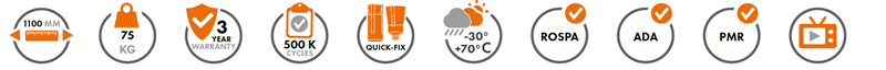 Umožňuje presné nastavenie rýchlosti zatvárania a finálneho zaklapnutia. Záruka nastavenej rýchlosti zatvárania pri prevádzkových teplotách od -30°C do +70°C (bez potreby akýchkoľvek úprav).