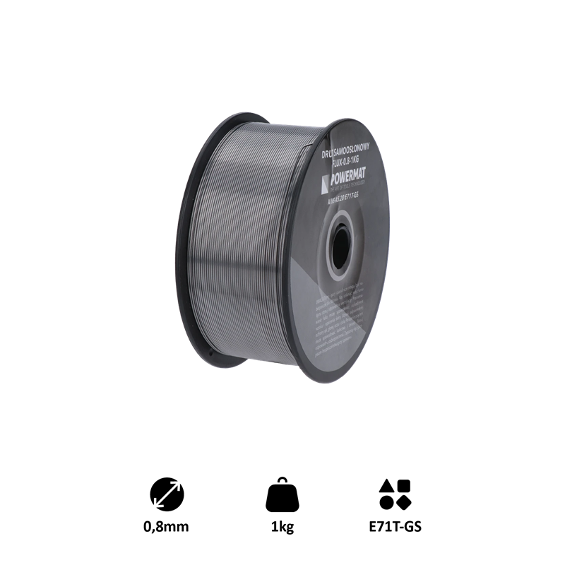 Drôt s dutým jadrom s priemerom 0,9 mm / 1 kg E71T-GS od spoločnosti Powermat je určený na zváranie bežných a vysokopevných uhlíkových ocelí nepresahujúcich 510 MPa.
