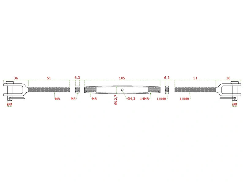 EB1-LSM8 šponovák pre nerezové lanko, so závitom M5-M8 a LH5-LH8, brúsená nerez K320/AISI304Skladom5,42 €/ ks4,41 € bez DPH