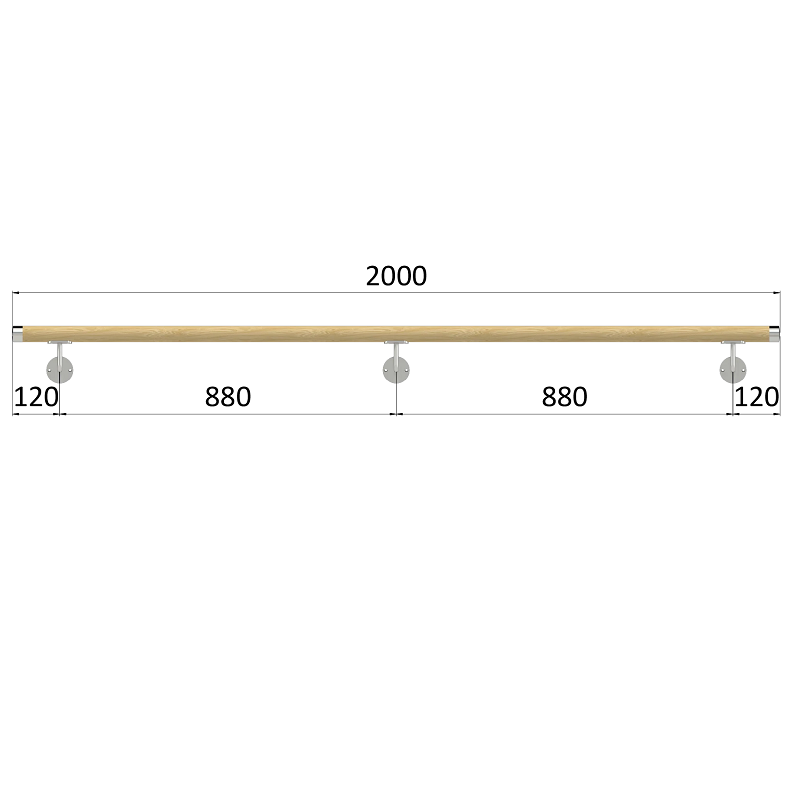 EDB-M200-N - madlo drevené, materiál: buk, brúsený povrch bez náteru, madlo s nerezovým ukončením, 2000 mm