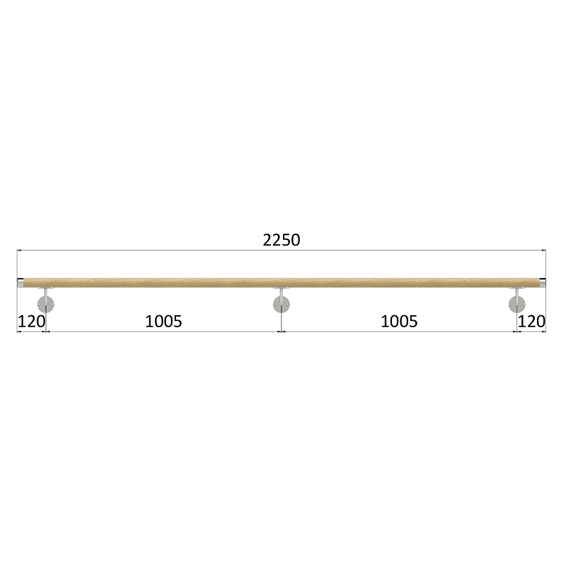 - EDB-M225-DL - madlo drevené, materiál: buk, brúsený povrch s náterom BORI (bezfarebný), madlo s dreveným ukončením, 2250 mm
