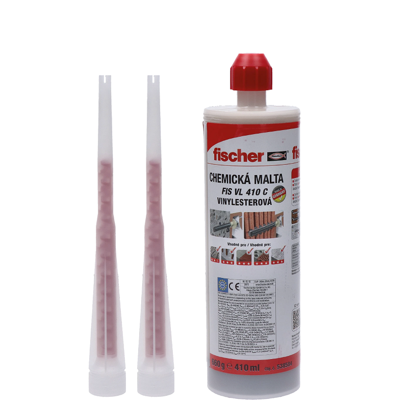 - FIS VL 410 C Chemická injektážna malta FIS VL 410 C - výrobca fischer - je hybridná vinylesterová živica bez styrénu s prímesou cementu, + 2x zmiešavací hrot