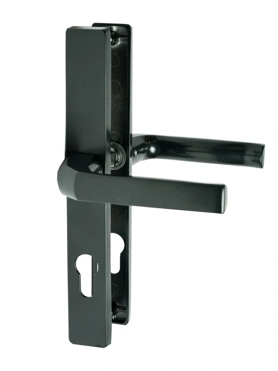Kľučka Al, rozmer štítu 239x31mm, rozteč A-72mm, B-67mm, povrchová úprava čierna farba RAL9005, s otvorom pre stavebnú vložku, pár