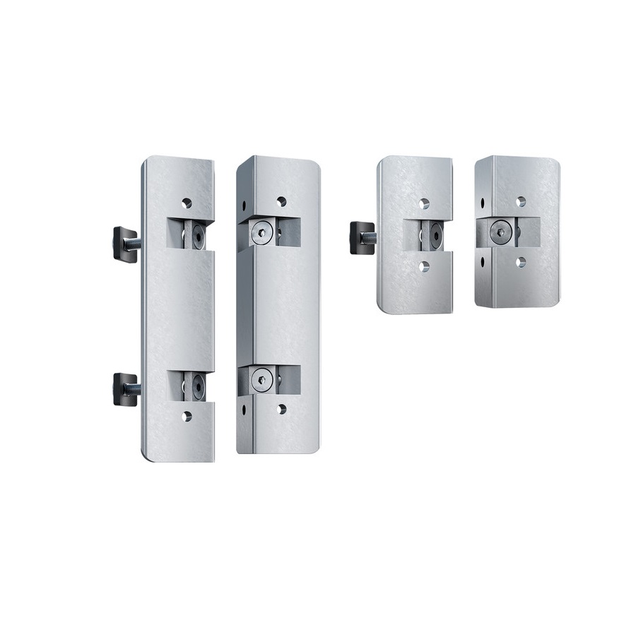 Set hliníkových držiakov pre montáž závesov LOCINOX® MAMMOTH180 a DINO na kruhový profil. Adaptér sa umiestňuje medzi záves a stĺpik a umožňuje montáž závesu na stĺpik ø 48 až ø 102 mm resp. na bránu ø 35 až ø 48 mm.