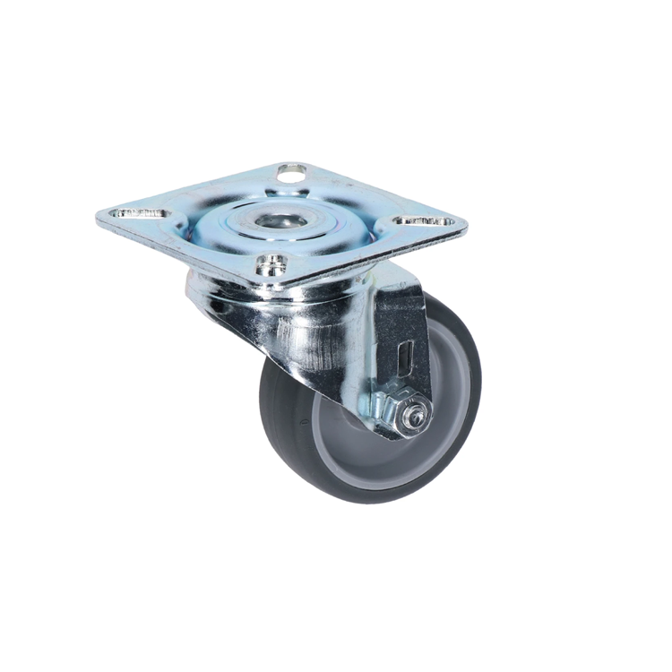 Otočné koliesko, vidlica vyrobená z oceľového výlisku - zinkovaná. Dvojitá guľôčková dráha v hlave otoče. Platnička so 4 otvormi na uchytenie kolieska. Stred kolieska vyrobený z polypropylénu, behúň kolieska z termoplatickej gumy - TENTEPRÉN. Klzné uloženie.