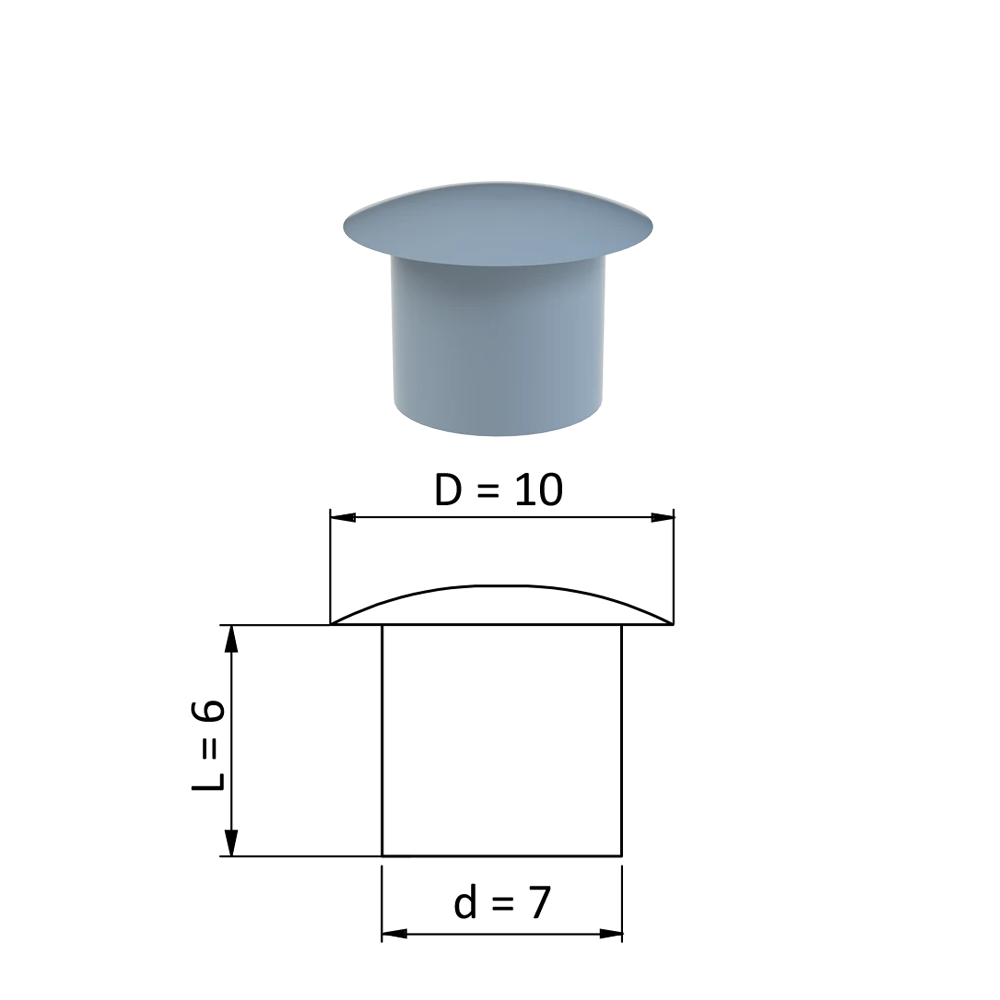 ZDO10x7GRAY Vnútorná krytka guľatá ø 10 mm, otvor ø 7 mm, sivá, plastSkladom0,10 €/ ks0,08 € bez DPH