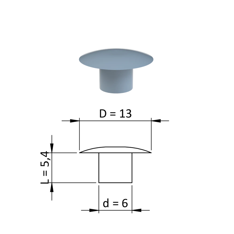 ZDO13x6GRAY Vnútorná krytka guľatá ø 13 mm, otvor ø 6 mm, sivá, plastSkladom0,10 €/ ks0,08 € bez DPH