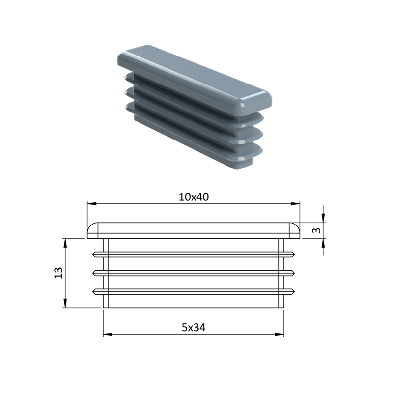 ZP10x40 Obdĺžnikové, Krytka plastová 10 x 40 mm, Čierna, Šedá